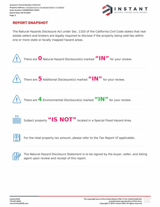 INSTANT NHD Natural Hazard Disclosure reports allow you to quickly find and understand the information you need. Each APN Residential and Commercial NHD report includes Real-Time data for: